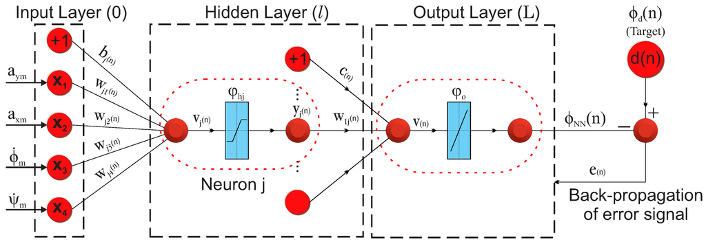 where denotes differentiation with respect to the argument. The synaptic weights and biases of the network in layer l according to the generalized delta rule are adjusted as: