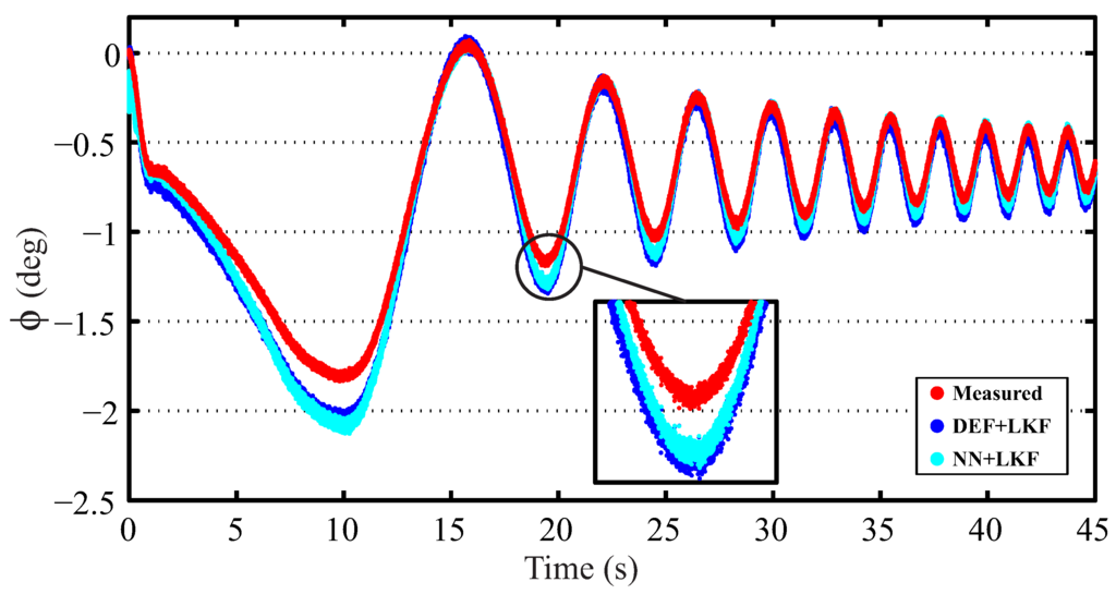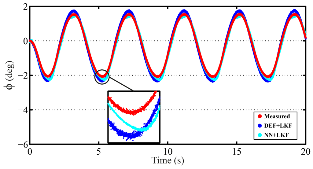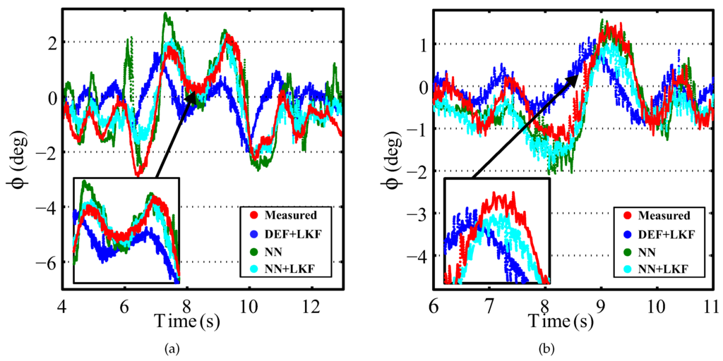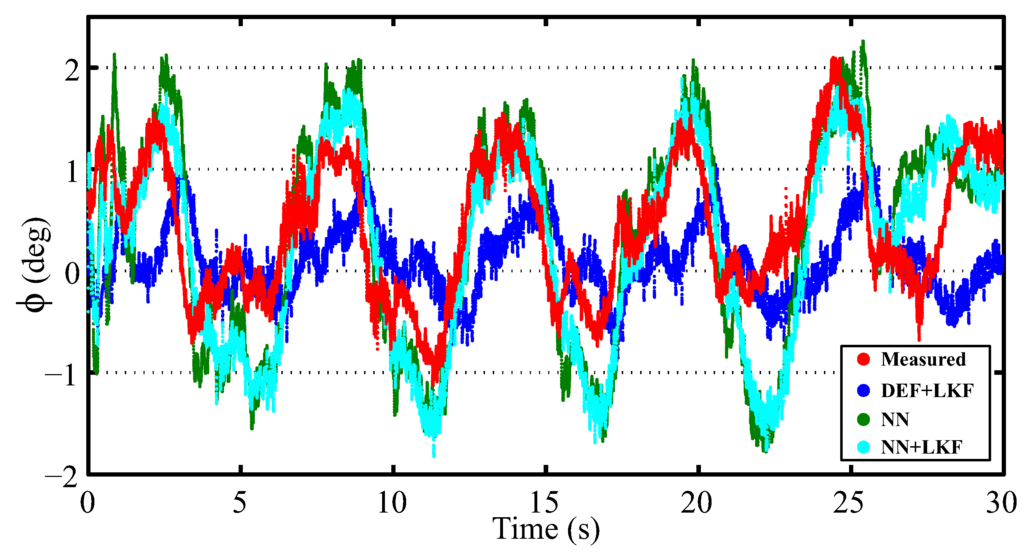 Experimental results also show the necessity of including the LKF in the NN estimator in order to filter noise and, therefore, to improve the roll angle estimation.