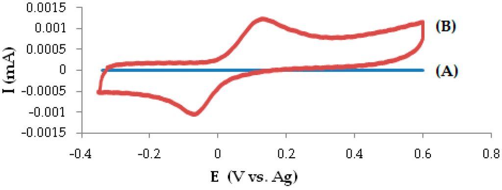 Cyclic Voltammograms of (A) Blank electrolyte solution, (B) DOPA (2.5 × 10−5 M).