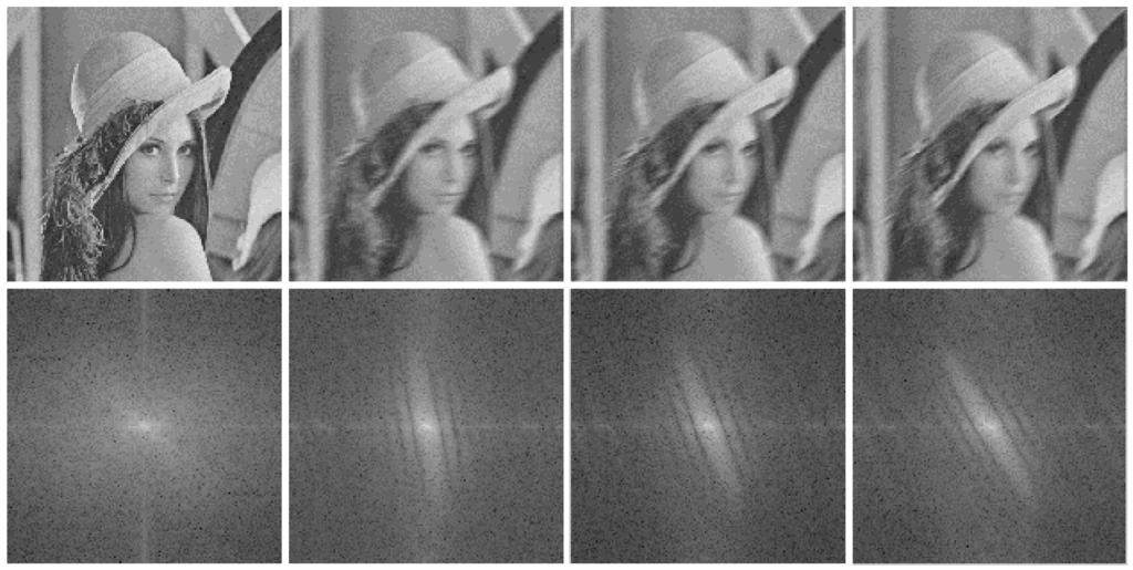 To get information about the blurred image in frequency domain, the function h(x, y) in Equation (12) is replaced by Equation (13) and its frequency format is derived via Fourier transform: