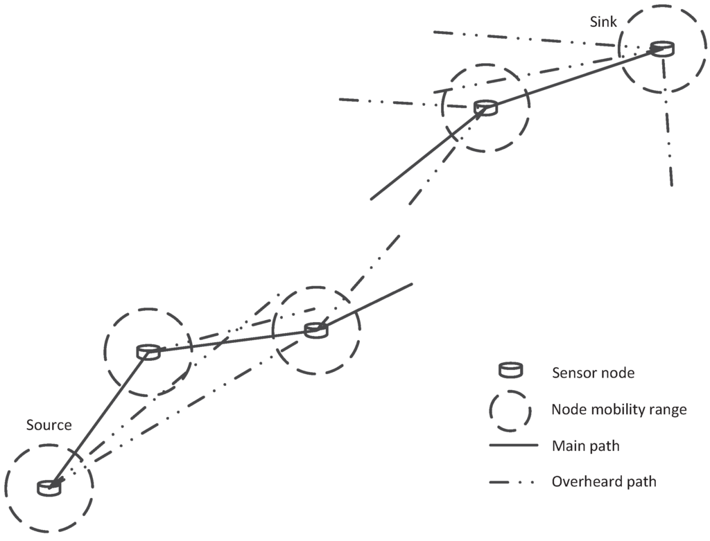 Equation (1) means that for node i, the adjacent relay nodes in the main multi-hop path always have less distance than the nodes in the overhearing path and thus have a better channel condition. This condition is always true for a suitable routing protocol.