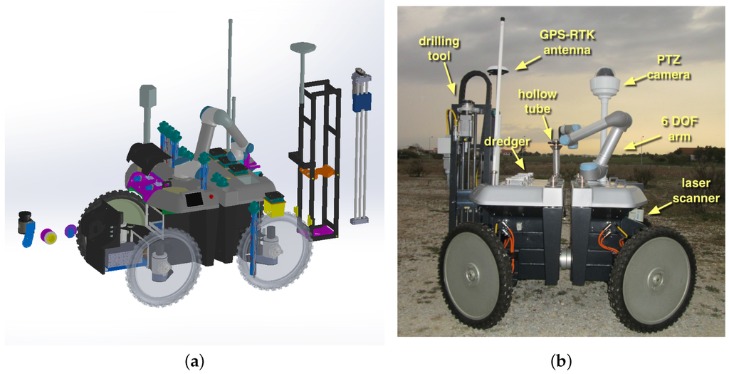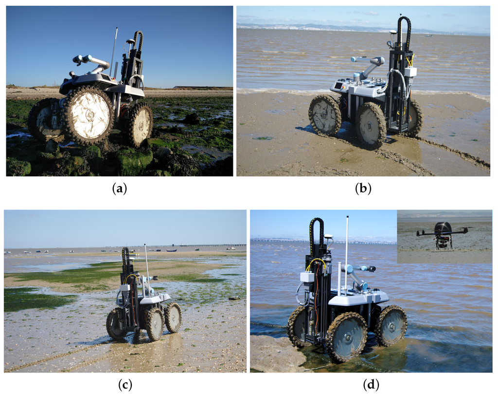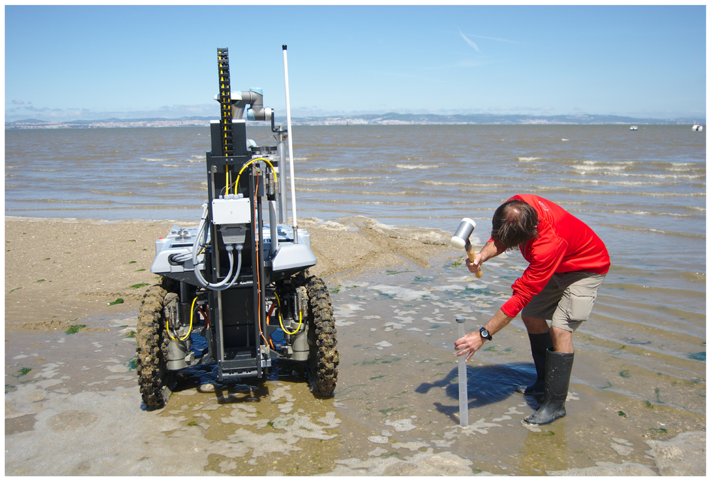 - Deusdado, P.; Pinto, E.; Guedes, M.; Marques, F.; Rodrigues, P.; Lourenço, A.; Mendonça, R.; Silva, A.; Santana, P.; Corisco, J.; et al. An aerial-ground robotic team for systematic soil and biota sampling in Estuarine Mudflats. In Robot 2015: Second Iberian Robotics Conference; Springer: Berlin, Germany, 2016; pp. 15–26. [Google Scholar]