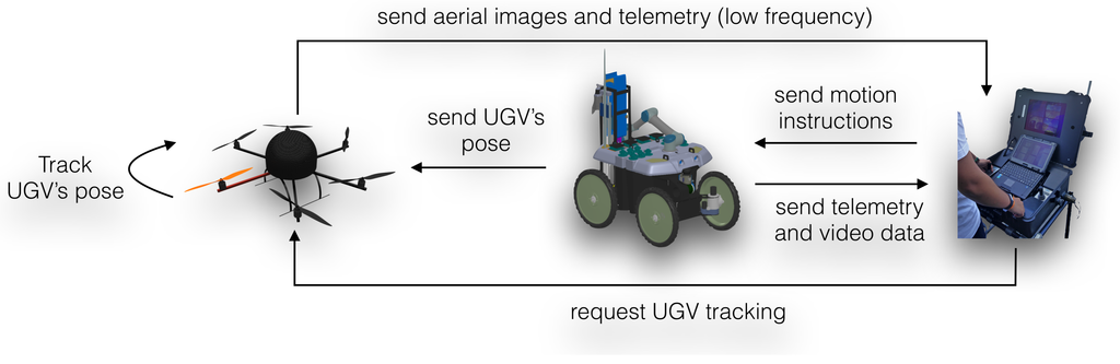 - The human-robot team reaches the operations site. The robots are unloaded from the transportation vehicle. Based on satellite imagery of the operations’ site, the human expert defines the workspace boundaries. These boundaries will be used by the robotic system to constrain its operation range.