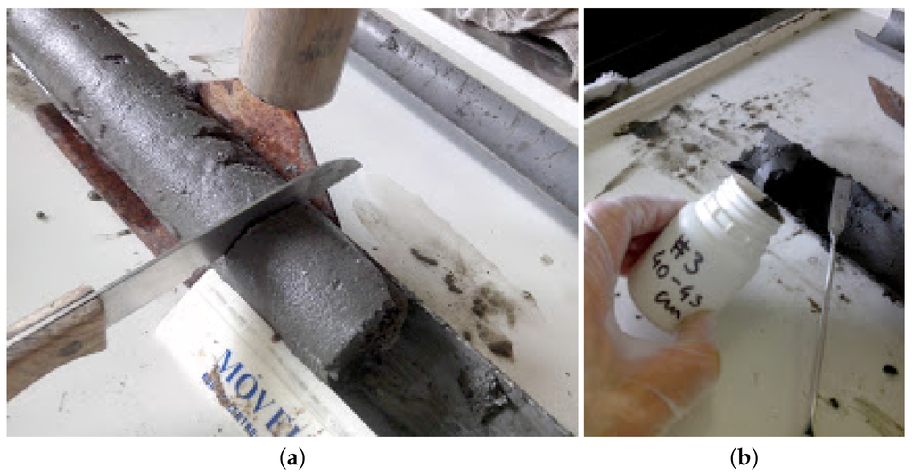 - Porritt, J.; Scott, H. Vibratory Core Drill Apparatus for the Recovery of Soil or Sediment Core Samples. U.S. Patent 5,004,055, 2 April 1991. [Google Scholar]