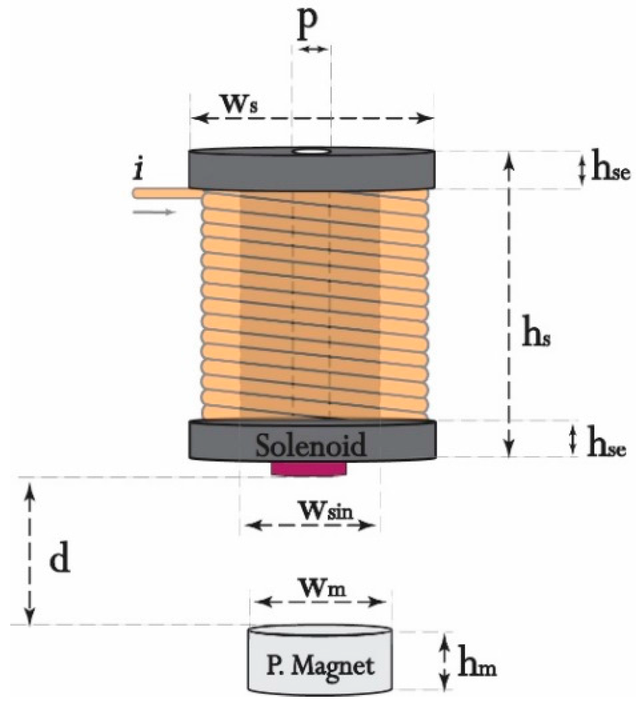 - Robertson, W.; Cazzolato, B.; Zander, A. Axial force between a thick coil and a cylindrical permanent magnet: Otpimizing the geometry of an electromagnetic actuator. IEEE Trans. Magn. 2012, 48, 536–545. [Google Scholar] [CrossRef]