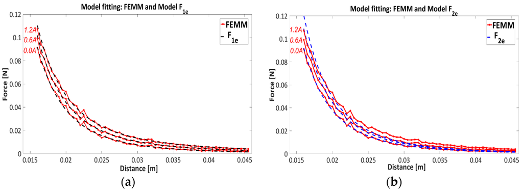 The graphical model fitting results with derived model given in Equation (13) and FEMM was already presented in Figure 9a.