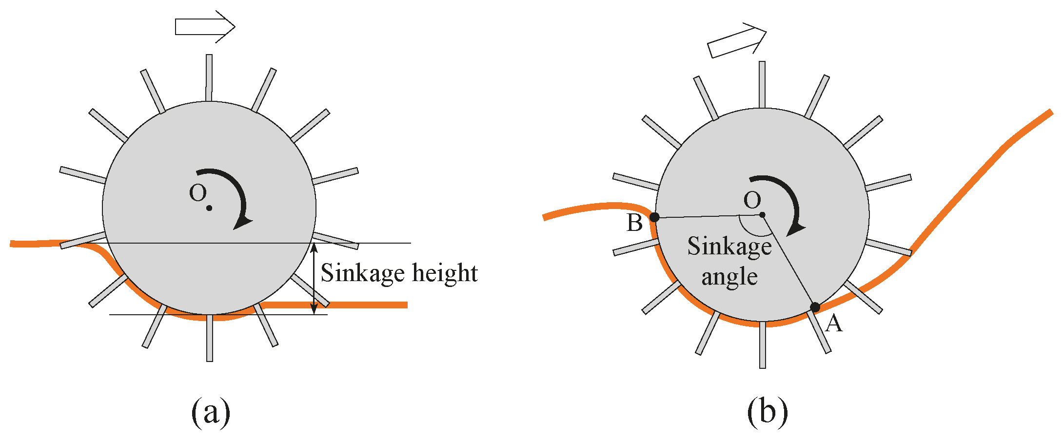 - Lyasko, M. Slip sinkage effect in soil-vehicle mechanics. J. Terramech. 2010, 47, 21–31. [Google Scholar] [CrossRef]