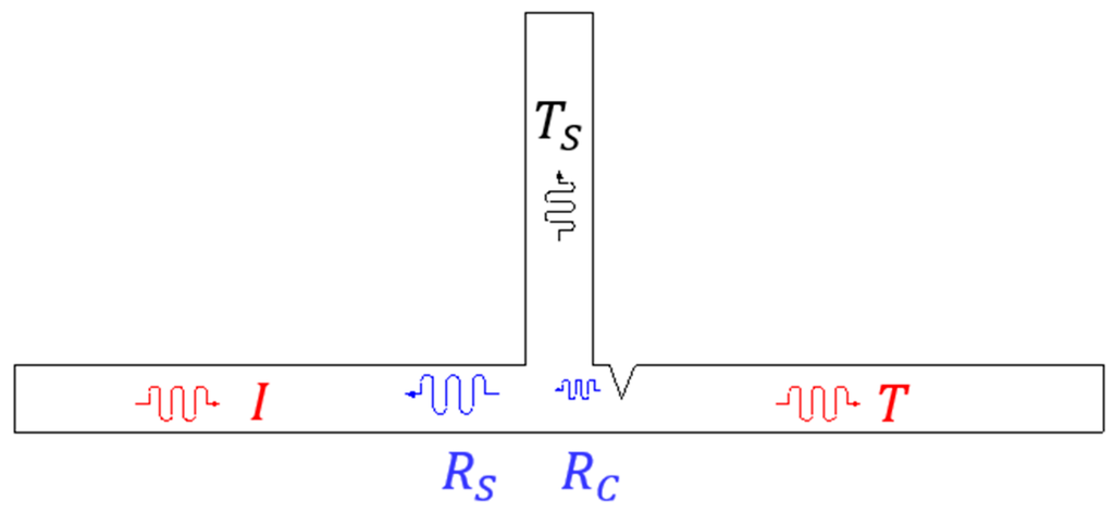 Lamb waves have been widely used for crack detection in thin elastic structures, because they are sensitive to even incipient cracks and capable of traveling a long distance with little attenuation [16]. When Lamb waves propagating along a structure encounter a HAZ crack, complex scattering processes such as reflection, refraction, transmission and mode conversion occur. Figure 2 shows the typical Lamb wave propagation scheme on a plate-like structure with a welded stiffener used as the target structure in this study. If incident waves (I) propagating along the plate encounter the welded stiffener and the crack, a portion of waves are reflected from the stiffener (RS) as well as the crack (RC). Then, another wave portion is leaked to the vertical stiffener (TS), and others are transmitted through the crack (T). Although the actual wave interaction with HAZ may much more complicated, the principal wave components are only described in Figure 2. Such complicate physical interactions enable Lamb waves to characterize the crack. Among them, RC would be one of the most promising features for crack identification and localization if it can be extracted from the measured data. Note that all wave components might be mixed in the measured data. In the subsequent subsection, it is explained how RC can be isolated from the measured data.