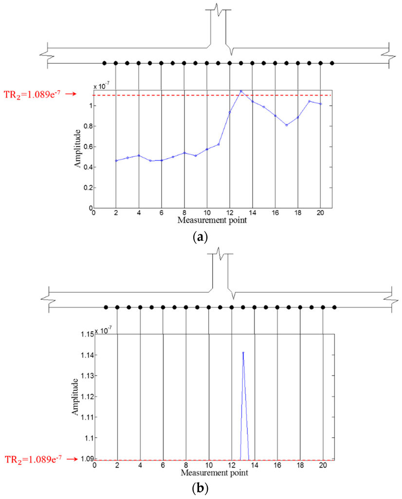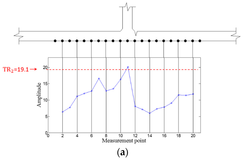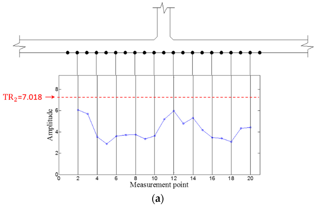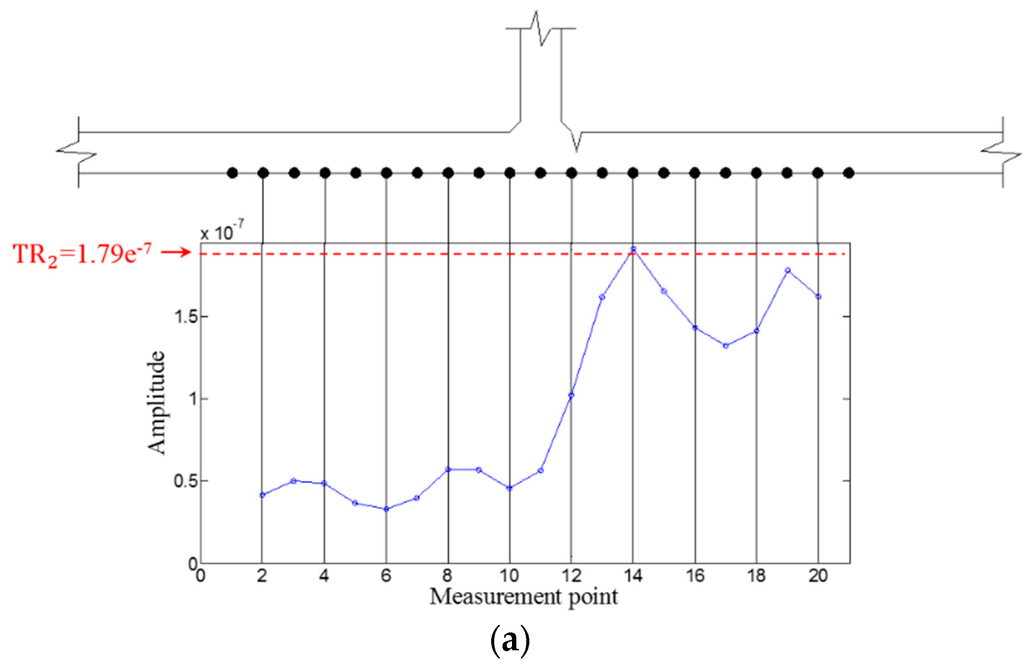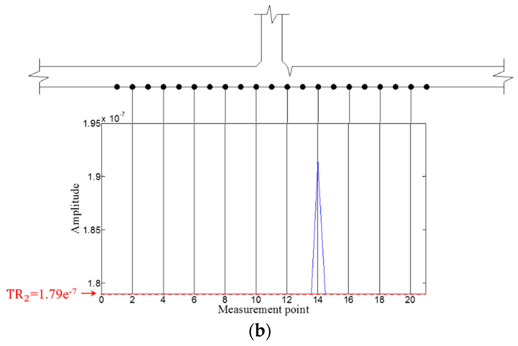 - An, Y.K.; Lim, H.J.; Kim, M.K.; Yang, J.; Sohn, H.; Lee, C. Application of local reference-free damage detection techniques to in situ in situ bridges. J. Struct. Eng. 2013, 140, 04013069. [Google Scholar] [CrossRef]