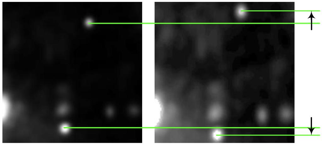 An example of an obvious non-translation relationship between patches. The left and right patches cannot be made to overlap each other, therefore, the relationship between the two patches cannot be described by offset.