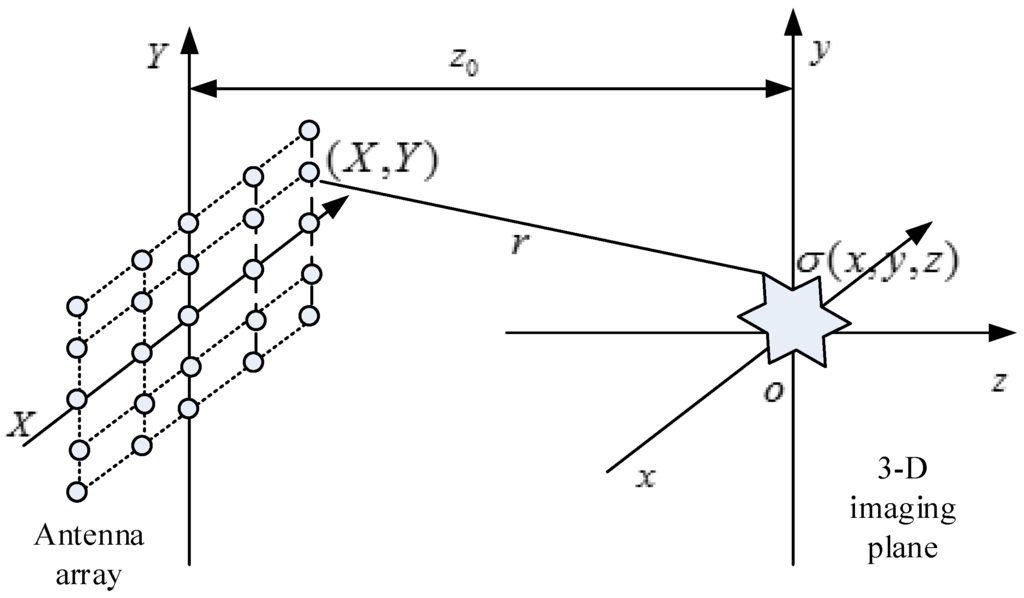 Section 2, a near-field 3-D imaging scene with a two-dimensional plane antenna array is described.
