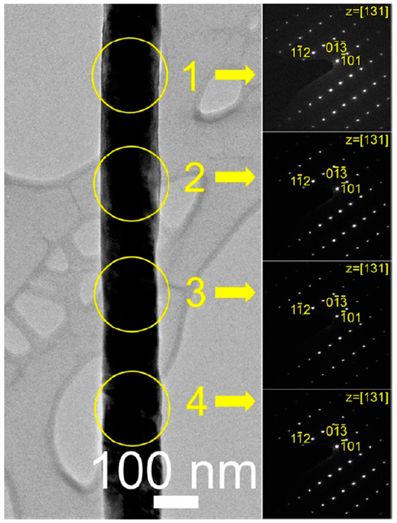 TEM image and selected area electron diffraction (SAED) patterns for the Mn3O4 NW. Reprinted from [] with permission. Copyright (2012) American Chemical Society.