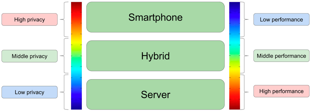This option requires a huge effort in software development. Particularly, a specific app to be executed in the smartphone needs to be developed, usually taking advantage of the SDK available. This app has to manage the subscription to events in the wearable and the issues related to possible breaks in the Internet connection. In addition, for some wearables, we also need to develop an app for the wearable to record the sensors’ data and to transfer it to the smartphone app. This is the case for Android Wear wearables.