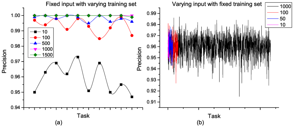 Single-stage task decomposition with single-stage training sets. (a) Fixed input with varying training set; (b) Varying input with fixed training set.