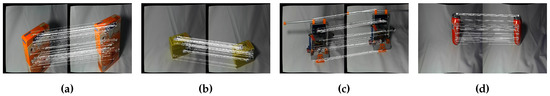 Sequential association of features to compute their inter-frame visibility. (a) Whoopies box 640 × 480; (b) Gena box 640 × 480; (c) Drilling tool 640 × 480; (d) Coke 1280 × 720. Then, following Algorithm 1, the visibility between non-sequential frames is computed.
