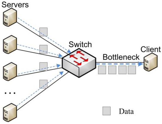 - Phanishayee, A.; Krevat, E.; Vasudevan, V.; Andersen, D.G.; Ganger, G.R.; Gibson, G.A.; Seshan, S. Measurement and Analysis of TCP Throughput Collapse in Cluster-based Storage Systems. In Proceedings of the USENIX FAST 2008, San Jose, CA, USA, 26–29 February 2008; pp. 175–188.