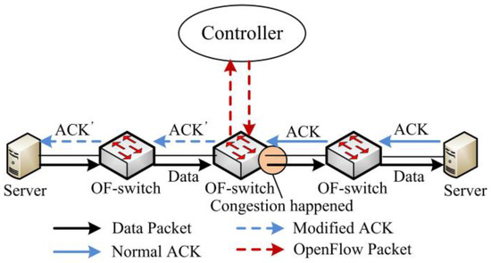- Ghobadi, M.; Yeganeh, S.; Ganjali, Y. Rethinking end-to-end congestion control in software-defined networks. In Proceedings of the 11th ACM Workshop on Hot Topics in Networks, Redmond, WA, USA, 29–30 October 2012; pp. 61–66.