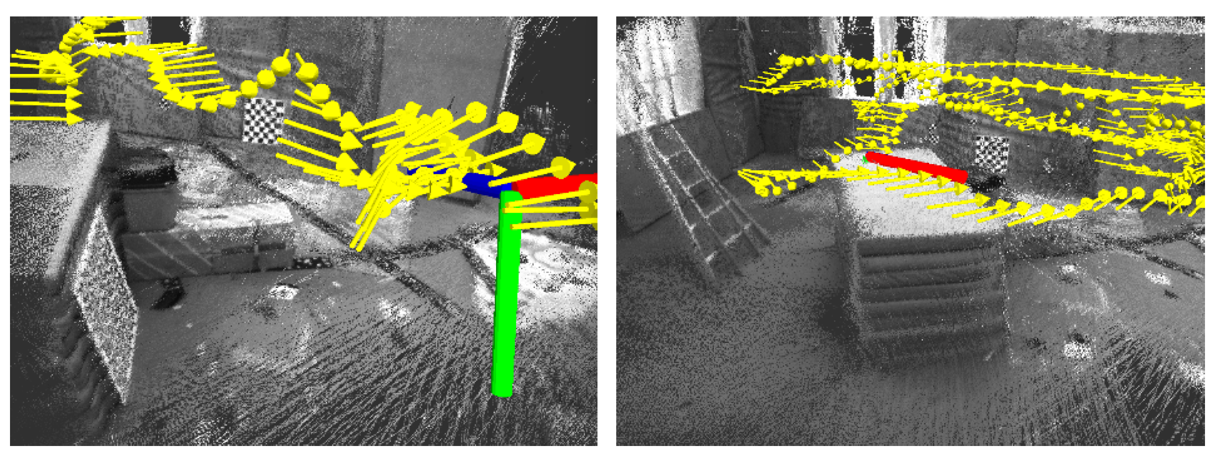 3D environments reconstructed by our stereo VO for the EuRoC (European Robotics Challenge) “room-1” dataset.