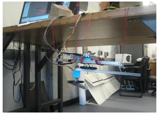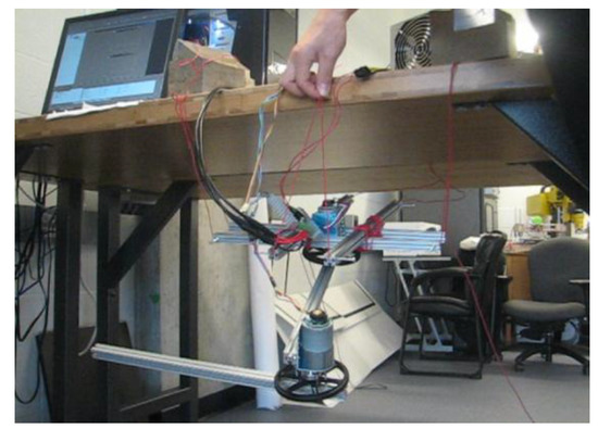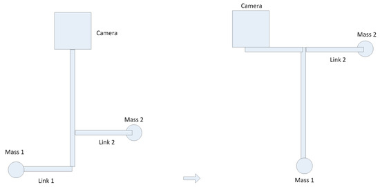 Testing was conducted using Simulink and dSpace. Here, a 2-DOF link manipulator is set up and built as an illustration. The robot is suspended by wires in the air so any unbalancing phenomena can be easily observed. The Simulink model is shown in Figure 6. For the unbalanced 2-DOF link manipulator, when the manipulator moves from one position to another, the system will swing and vibrate, which can be observed in real time, as illustrated in Figure 7. For the balanced 2-DOF link case, when the manipulator moves from one position to another, the system will remain steady, which can also be observed in real time, as shown in Figure 8.