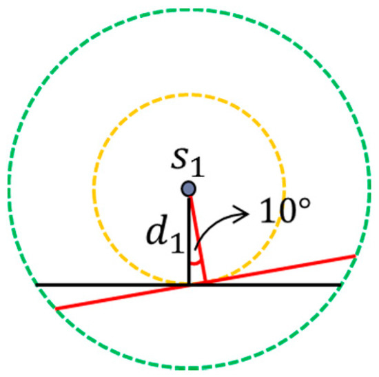 According to Equation (5), the distance is an important parameter in recharging model. A large value of will lead to low recharging efficiency while a small value of might result in a long path. Let notation represent the threshold of distance. It is obvious that we have:
