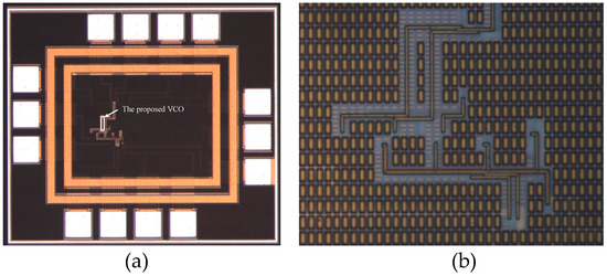 (a) Die photo of the whole chip; (b) Die photo of proposed VCO.
