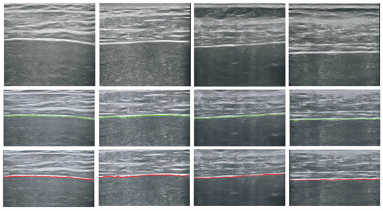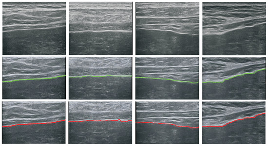 Extracted liver capsules (bottom row) and manually labeled liver capsules (middle row) for normal samples.