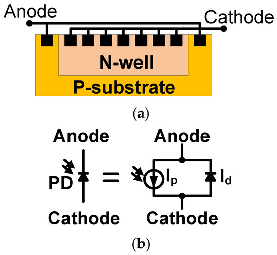 Figure 2. n+/p-substrate PD: (a) cross-section; and (b) the equivalent circuit.
