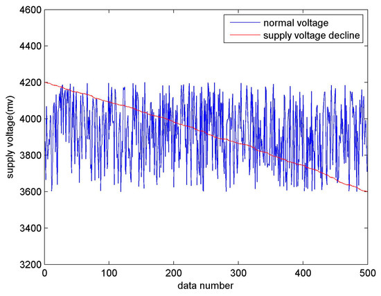Figure 6. Numerical mutation (DO). - Supply voltage fault. A remarkable feature of power failures is that the supply voltage continues to decline, even down to 3600 mV. As shown in Figure 7, the voltage fault data represented by the red line continues to decrease to 3600 mV, and even less.