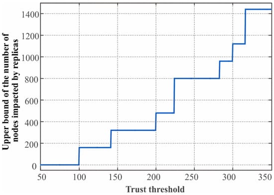The adversary can undermine the location claim-based protocols by deploying large amounts of compromised nodes to report fake locations and participate in local control protocols. However, such an attack strategy requires the adversary to place one compromised node to accompany each replica in the network, resulting in a very high cost for launching node replica attacks. We suppose that the adversary does not adopt this attack strategy. This assumption goes unstated but is implied by the use of signed location claims in other replica detection schemes [,]. In addition, it is worthwhile to note that deploying multiple replicas of a single compromised node into the same region does not bring the adversary more benefits. This is because the output of multiple replicas would be treated as redundant and discarded. Multiple replicas with the same ID would not have more influence in a region than a single replica. Furthermore, due to page limitation, in this work we only discuss the case in which no collisions exist between the compromised nodes and their replicas.