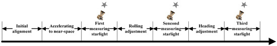 Simulation results verify the correctness of observability analysis above. The installation error convergence curve is given in Figure 3 measuring the starlight three times for LFOV. At the end of the first rolling posture adjustment, the estimated value of installation error parallel to the rolling axis is unchanged, the same as parallel to the heading axis at the end of second heading posture adjustment. Other installation error angles basically converged to the true value. At the end of the second heading posture adjustment, the estimated installation error is close to its true value, and still a little weaker than other installation error angles parallel to the optical axis. In all cases, the installation error is observable by means of rolling adjustment and heading adjustment for LFOV.