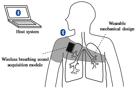 Basic scheme of proposed wearable and wireless breathing sound monitoring system.