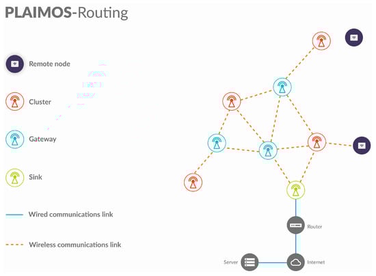 - It employs redundant links; during network formation, PlaIMoS-Routing stores each node’s link in a routing table, thus ensuring alternate routes if the data cannot be transmitted via the main link. PlaIMoS-Routing determines the main links through the creation of a metric (determined as weight), which is formed by the intensity of the received signal (RSSI), the number of hops and the lifetime of each node (TTL);