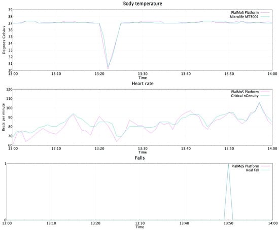 - generating alarms when patient clinical parameters exceeded the present ranges (temperature and patient falls)
