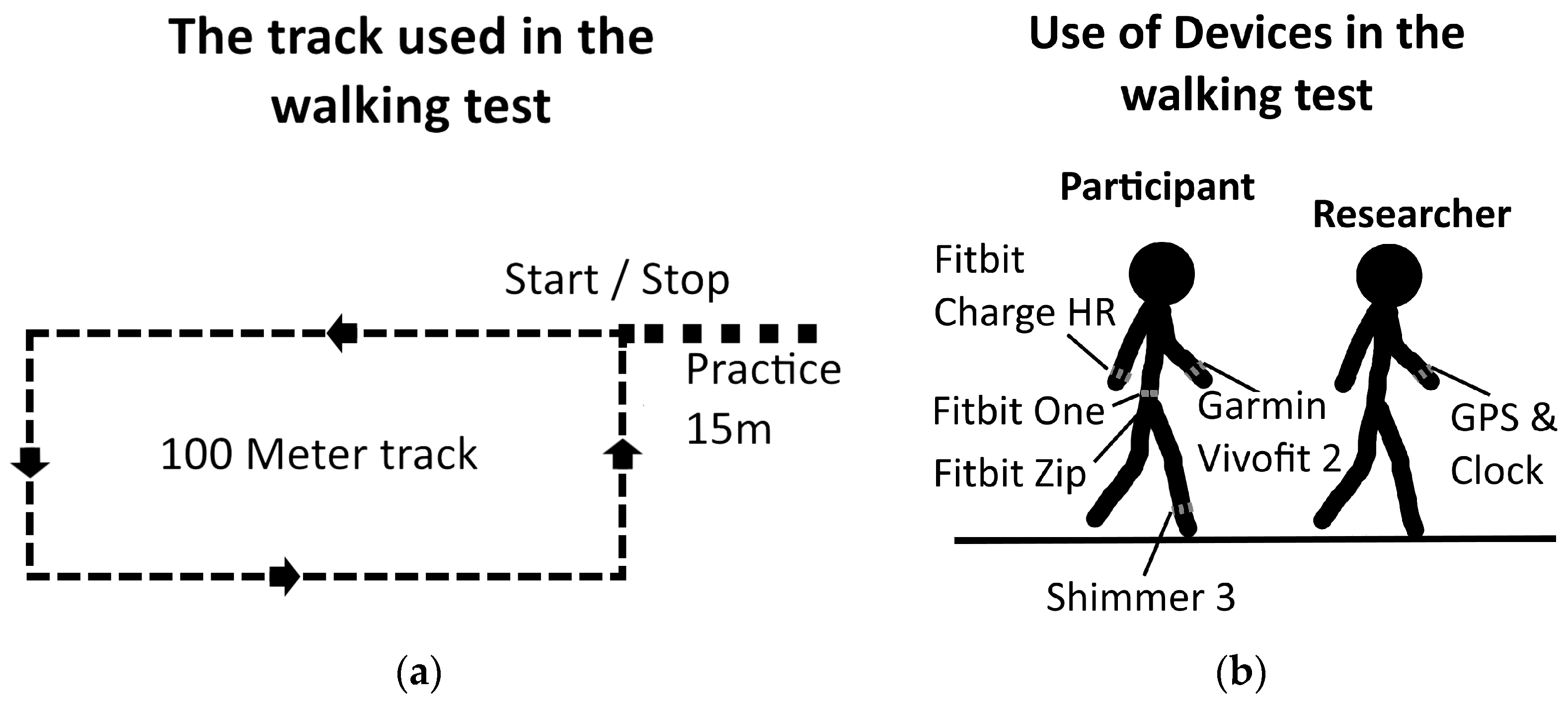 - Huang, Y.; Xu, J.; Yu, B.; Shull, P.B. Validity of FitBit, Jawbone UP, Nike+ and other Wearable Devices for Level and Stair Walking. Gait Posture 2016, 48, 36–41. [Google Scholar] [CrossRef] [PubMed]