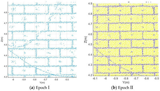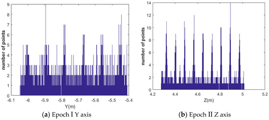 The histograms of the number of points along Z and Y axes are shown in Figure 11. Figure 11a presents the histogram of the number of points along the Y axis in epoch I while Figure 11b shows the histogram of the number of points along the Z axis in epoch II.