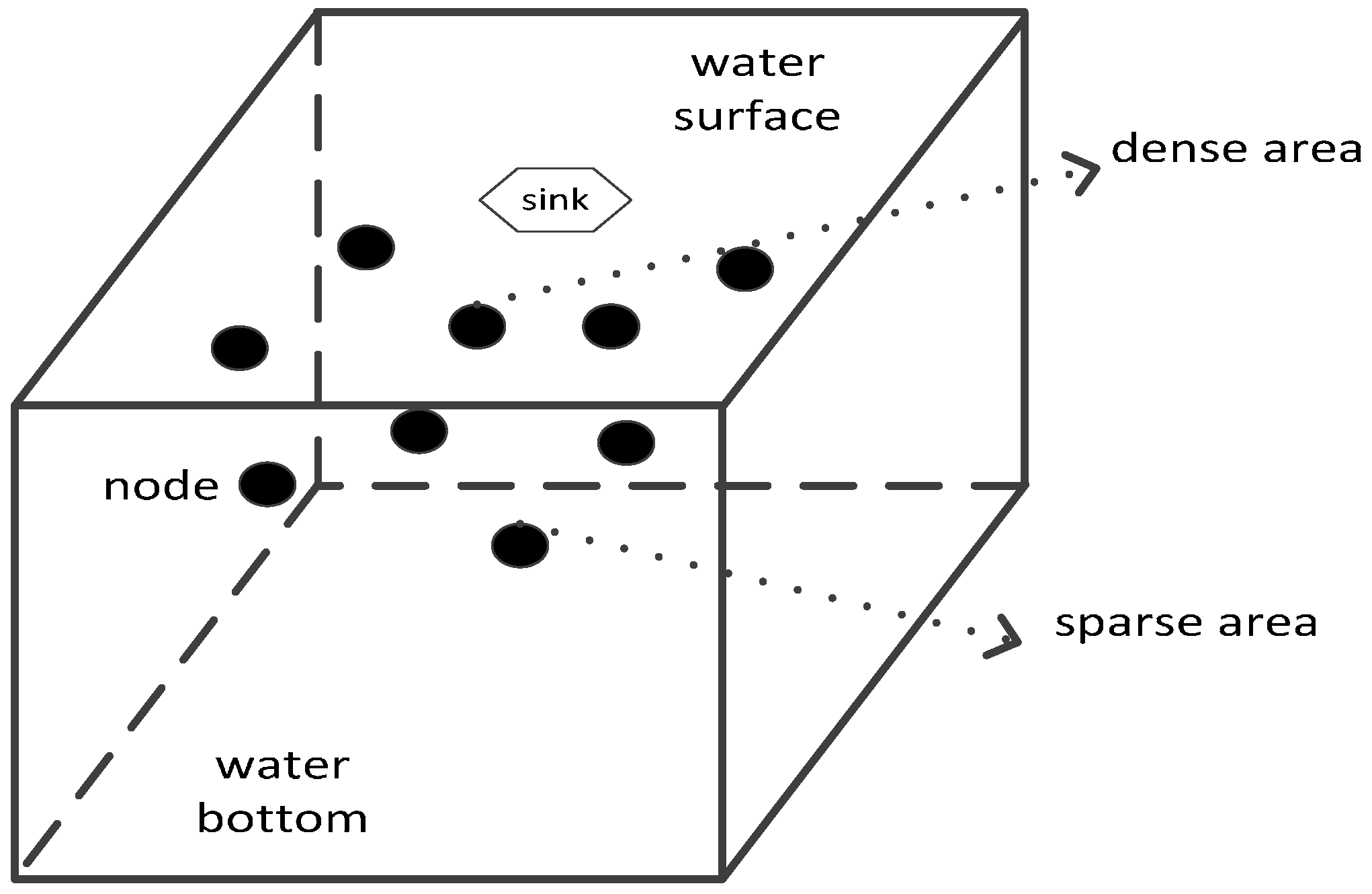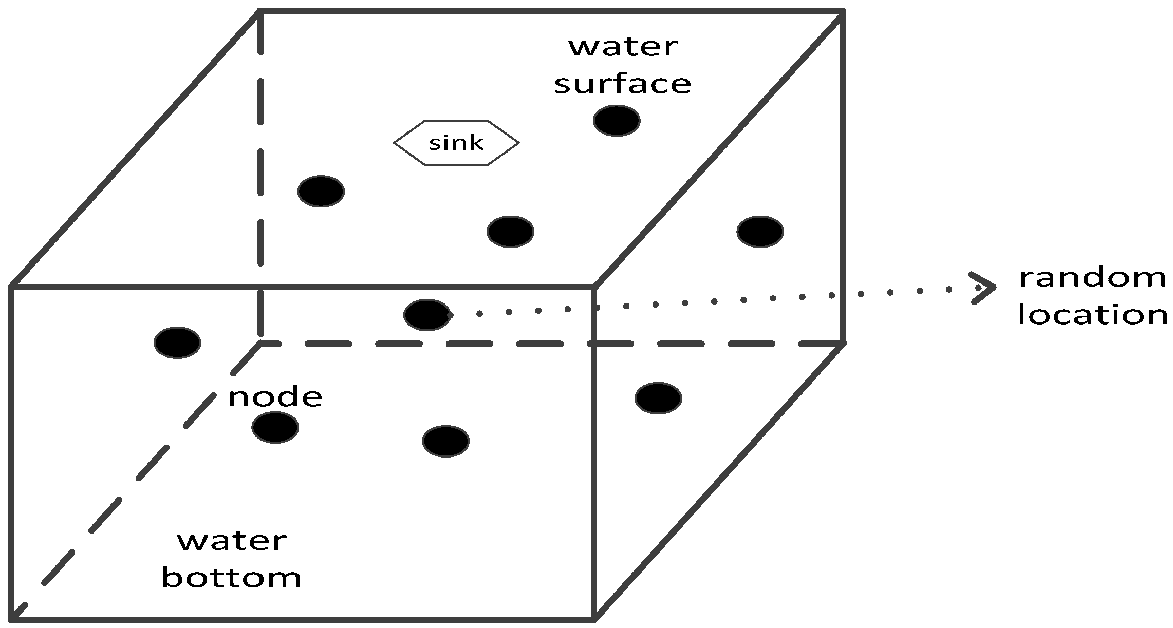 - Inspired by the related assumptions or descriptions in references [18,22], the sink node and all the other nodes can freely move in all directions with the help of related technologies such as AUVs [38] and their real-time locations can be known during network operation with the help of related localization technologies [39].