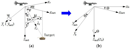 Suppose the line-of-sight (LOS) vectors of the main target , the sub-target and the point K beneath the camera are , , respectively, is the angle between and , and is the angle between and , then [20]: