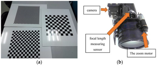The origin is the camera projection center. The -axis is parallel to the horizontal column pixels’ direction in the CCD sensor (i.e., the direction in Figure 4). The -axis is parallel to the vertical row pixels’ direction in the CCD sensor (i.e., the direction in Figure 4). The positive -axis represents the optical axis of the camera.