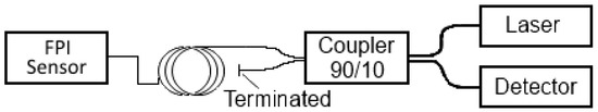 Schematic view of the readout system used to detect changes in the length of the elastic element in the FPI sensor. No light reflects at the terminated fiber end.