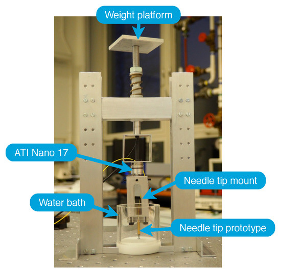 - Van Gerwen, D.J. Needle-Tissue Interaction by Experiment. Ph.D. Thesis, Delft University of Technology, Delft, The Netherlands, December 2013. [Google Scholar]