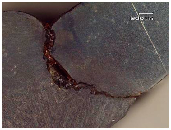 X-ray inspection of an undercut defect inside the weld.