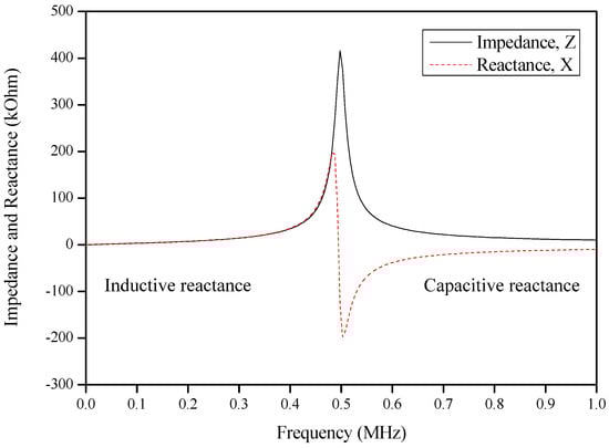 For each non-ideal inductor, it has a special frequency point named as a natural frequency where the impedance of the circuit is dominated by inductive properties at low frequency, while at high frequency it is dominated by capacitive properties. At the intermediate point in between two properties, the impedance transition becomes purely resistive. This is the resonance frequency of an RLC circuit, also known as a resonant circuit, in radians per second and every non-ideal inductor has it. This resonance point is called the self-resonance frequency of the inductor. The self-resonance frequency is where the inductor will start to behave like a capacitor beyond the self-resonance point. The resonant frequency is the frequency where the inductive reactance and capacitive reactance are the same and cancel one another. This response is shown in Figure 2. The reactance, up to the resonant frequency, is positive, but beyond resonance, the reactance becomes negative. From basic circuit theory, it is known that a negative reactance is associated with a capacitor. Therefore, above the self-resonance frequency (SRF), the inductor behaves like a capacitor.