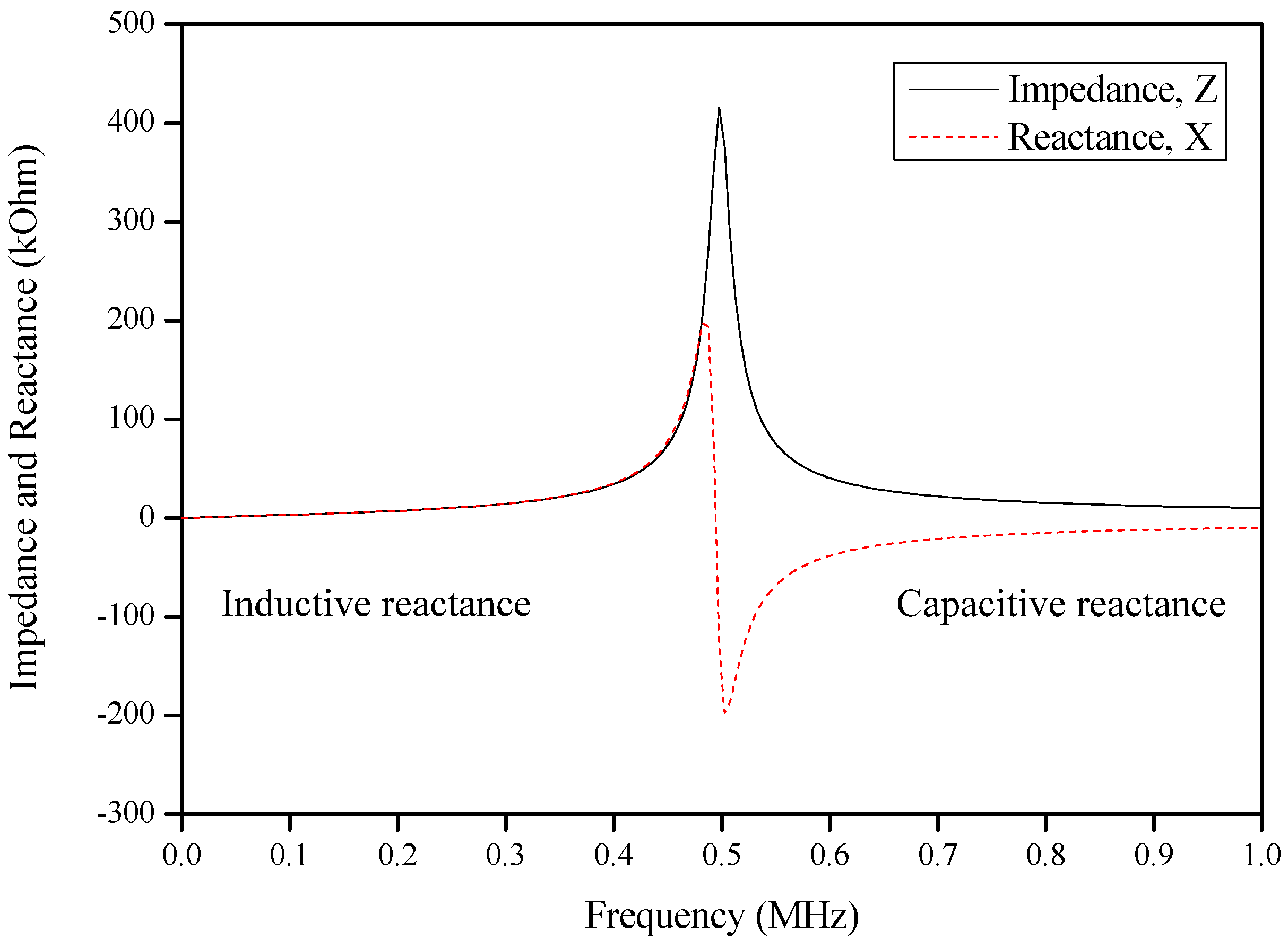 Example of the air core inductor impedance and reactance.