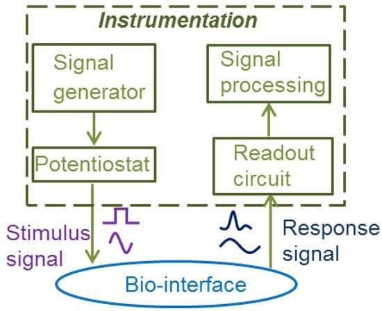 After electrodes translate biorecognition events into the electrical domain, the signals can then be measured by electronic instrumentation that also provides the biasing signals to drive electrochemical reactions. In modern microelectronics, CMOS circuits have come to dominate the industry due to their low cost and solid performance, especially in low frequency applications, such as biosensing. Consequentially, most of the electrochemical instrumentation developed recently has utilized CMOS technology, and thus, this review will be limited to CMOS electrochemical instrumentation circuits.