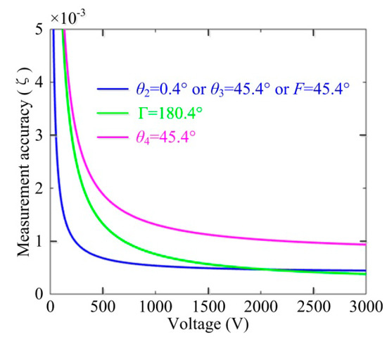 Moreover, the influence of the imperfect phase delay angle of half-wave plate Γ is similar to the unideal θ4. Thus, it is obtained that the unideal half-wave plate and the axis-angle error between the half-wave plate and BGO crystals will arouse the nonlinearity of OVS and that the unideal axis-angle will induce the relative measurement error of OVS, as depicted in Figure 6.