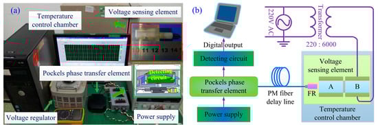 - Li, H.; Bi, L.; Wang, R.; Li, L.; Lin, Z.; Zhang, C. Design of closed-loop detection system for optical voltage sensors based on Pockels effect. J. Lightwave Technol. 2013, 30, 1921–1928. [Google Scholar] [CrossRef]