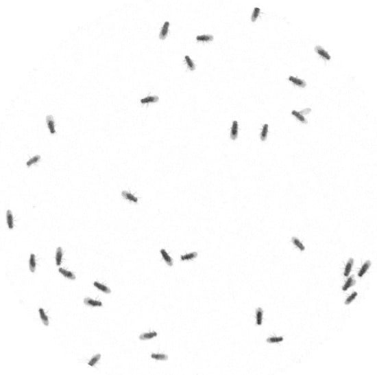 - Arai, S.; Sirigrivatanawong, P.; Hashimoto, K. Multiple Drosophila tracking and posture estimation algorithm. In Proceedings of the 4th International Conference on Informatics, Electronics & Vision (ICIEV), Fukuoka, Japan, 15–18 June 2015; pp. 1–6.