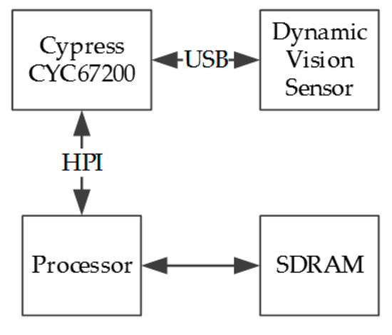 The sensorial sub-system consists of a processor with its SDRAM embedded into the FPGA platform used to implement the system. The On-The-Go USB controller generates the differential signals and some communication stages imposed by the USB protocol and the neuromorphic sensor, as can be seen in Figure 2.