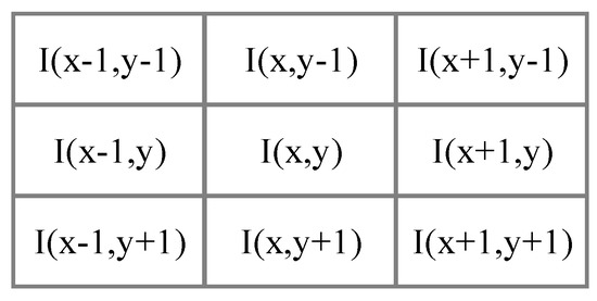 The first step in the image processing stage is to reduce the noise as much as possible in order to decrease useless information, and every image received by the system is submitted to a filter. This process eliminates pixels with few neighbors around the image. These events are usually unwanted noise, and this filter is performed using the Equation (1) (See Figure 3):