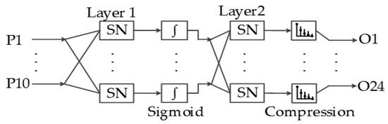 The implemented pattern recognition ANN consists of two layers with 10 and 24 neurons. Figure 17 shows the structure of the ANN implemented in the system presented in this paper, and all of the outputs of the first layer are connected to all of the 24 neurons of the output layer.